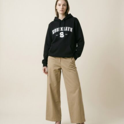Oversize hættetrøje i kraftig kvalitet af 100% bomuld med motiv i filt med broderede kanter foran. Hætte med løbesnor i ekstra kraftig kvalitet og med solid metal afslutning. Lomme foran og ribkanter nederst og på ærmerne. Detaljeret patch med tekst og københavner-motiv syet på lænden venstre side bagpå.