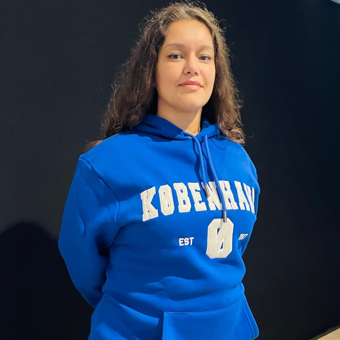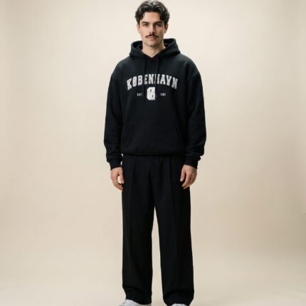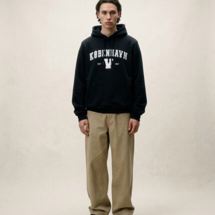 Oversize hættetrøje i kraftig kvalitet af 100% bomuld med motiv i filt med broderede kanter foran. Hætte med løbesnor i ekstra kraftig kvalitet og med solid metal afslutning. Lomme foran og ribkanter nederst og på ærmerne. Detaljeret patch med tekst og københavner-motiv syet på lænden venstre side bagpå.